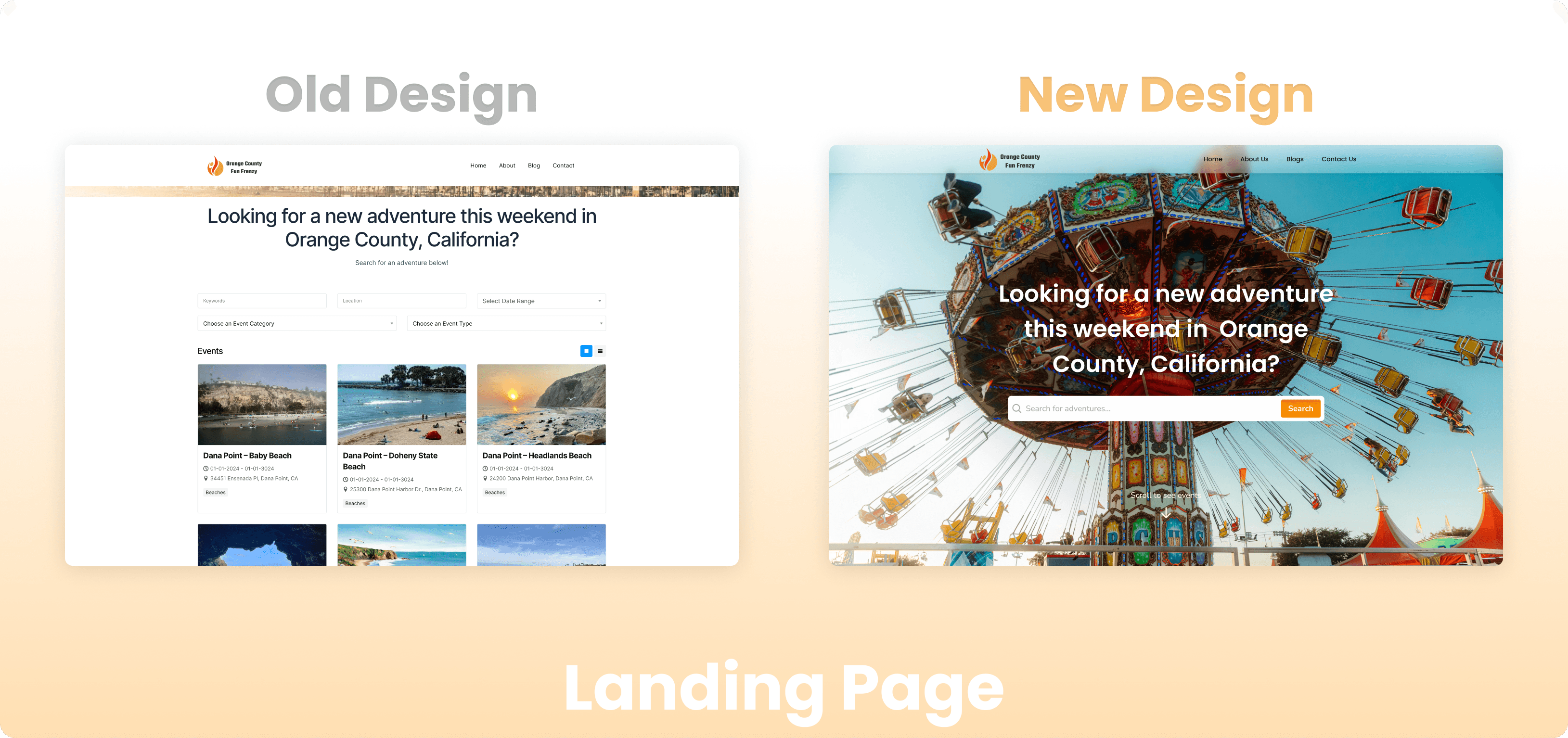 I chose Poppins to give the website a more modern look, and Orange Primany color, to match its name "Orange County.
